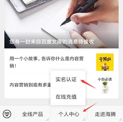3.進(jìn)入公眾號(hào),依次點(diǎn)擊“個(gè)人中心-實(shí)名認(rèn)證”