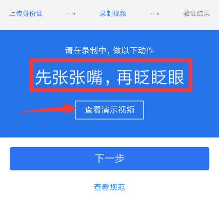 根據(jù)要求做”張張嘴,眨眨眼”操作,可以查看演示視頻,錄制視頻時(shí)記得點(diǎn)擊錄制哦。