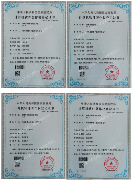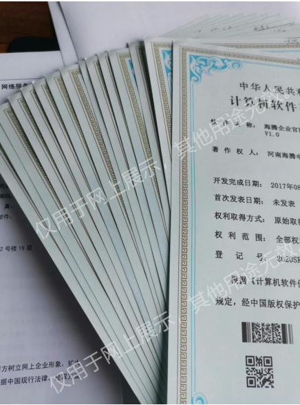 海騰于近日取得由版權(quán)局頒發(fā)的計(jì)算機(jī)軟件著作權(quán)證書(shū),分別是:海騰云端智能建站系統(tǒng)V1.0、海騰商城系統(tǒng)V1.0、海騰小程序開(kāi)發(fā)平臺(tái)V1.0、海騰服務(wù)器監(jiān)測(cè)系統(tǒng)V1.0、海騰網(wǎng)站加速防護(hù)系統(tǒng)V1.0、海騰域名注冊(cè)系統(tǒng)V1.0、海騰云服務(wù)器平臺(tái)V1.0、海騰企業(yè)官網(wǎng)系統(tǒng)V1.0等多達(dá)十幾項(xiàng)的軟件著作權(quán)證書(shū)。