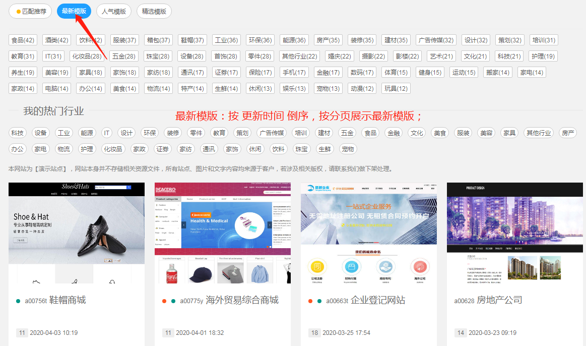 最新模版:按 更新時間倒序,按分頁展示最新模版;