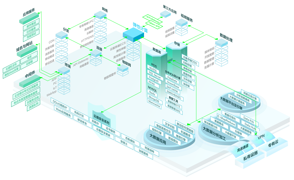 ECS 可與阿里云各種豐富的云產(chǎn)品無縫銜接 |