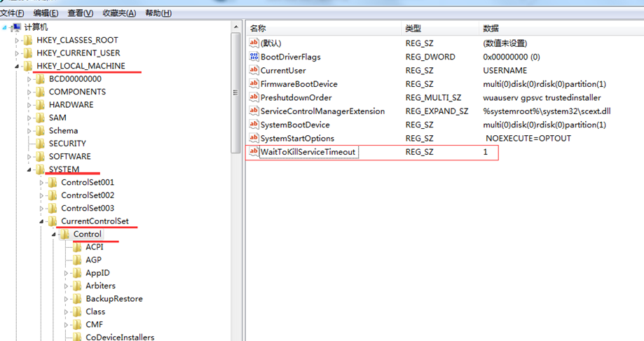 WaitToKillServiceTimeout設置為1 ; 通過這樣設置關機速度明顯快了不少。