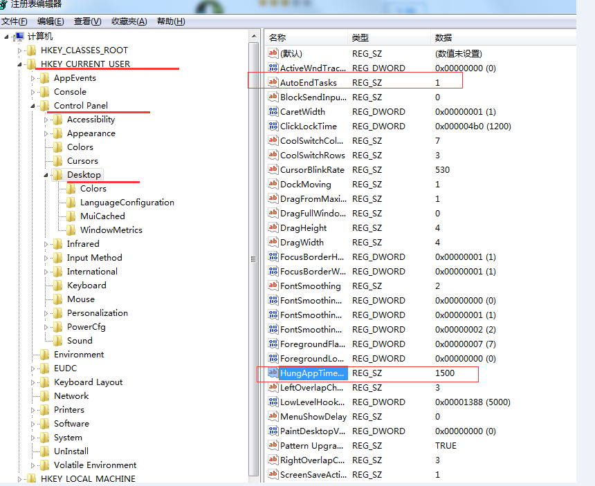 AutoEndTasks的鍵值設置為1