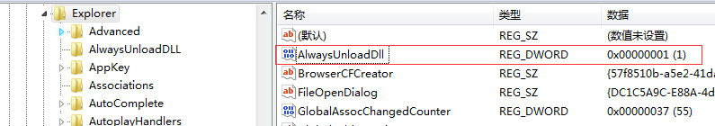 HKKEY_LOCAL_MACHINE\SOFTWARE\Microsoft\Windows\CurrentVersion\Explorer增加一個項DWORD值“AlwaysUnloadDLL” 默認值設為1。注:如由默認值設定為0則代表停用此功能。