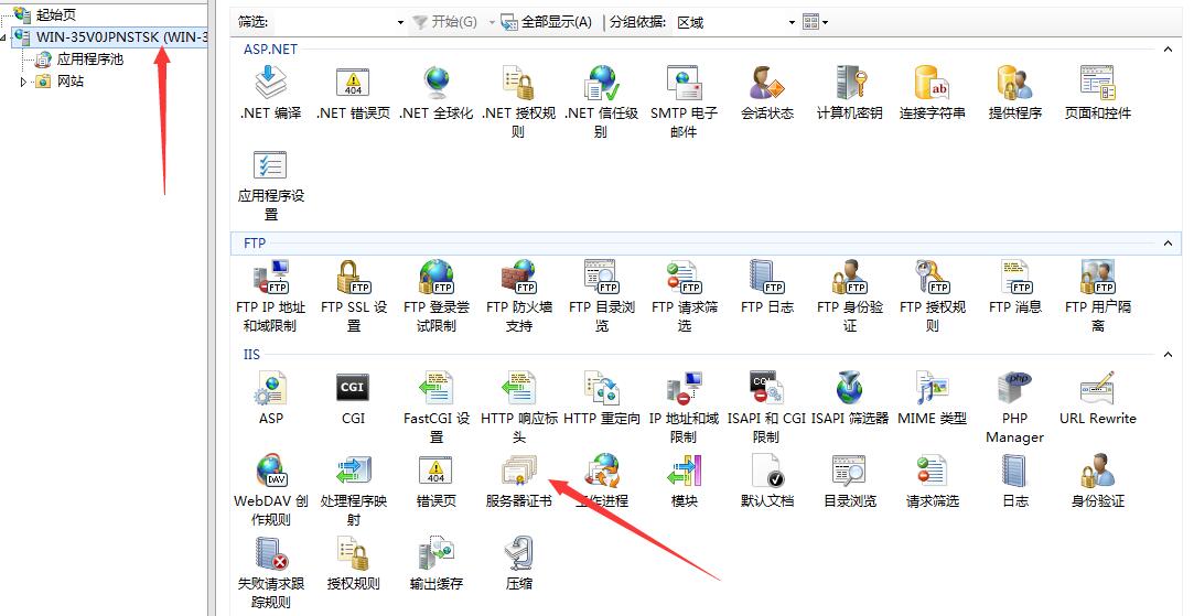 1,首先打開IIS,在主頁雙擊服務(wù)器證書,如下圖