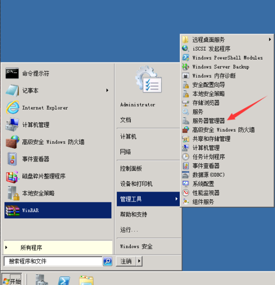 1.安裝IIS,打開“開始菜單” → “管理工具” → “服務(wù)器管理器” 并開始安裝。