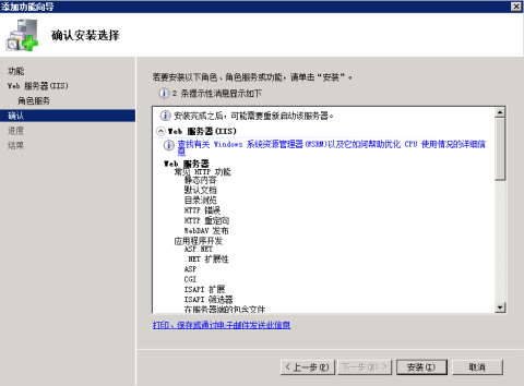 5.確認(rèn)完需要安裝的IIS服務(wù)后點擊安裝。