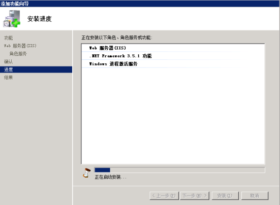 6.開始安裝IIS功能并等待安裝完畢。