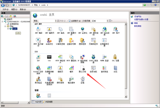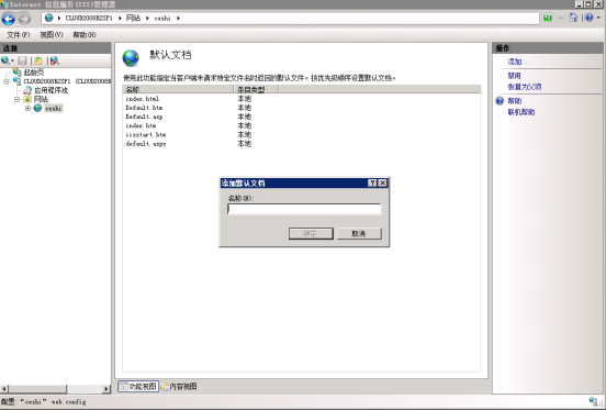 13.在IIS管理界面,打開默認(rèn)文檔選項,設(shè)置主目錄文件。